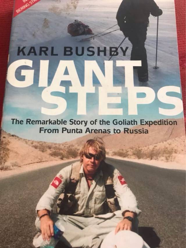 In Punta Arenas, Chile, in November 1998, Karl Bushby set out on one of the most remarkable journeys of modern times. His plan is as simple as it is extraordinary: to walk up the Americas, across the Bering Strait, through Asia, Russia and Europe, back through the Channel Tunnel and returning to Britain in 2011. It is a journey of remarkable endurance -- 20 miles a day, 3,000 miles a year, 36,000 miles in total. By the time Karl returns, he will have crossed four continents, twenty-five countries, a frozen sea, six deserts and seven mountain ranges. But more than that, unlike other similar expeditions, Karl is attempting it single-handed: no huge support teams, no large sponsorship deals, this is the inspiring true story of a man facing remarkable odds -- and winning. Giant Steps, the remarkable story of the Goliath Expedition from Punta Arenas to Russia - Karl Bushby. Little, Brown 2007. ISBN 9780751536959