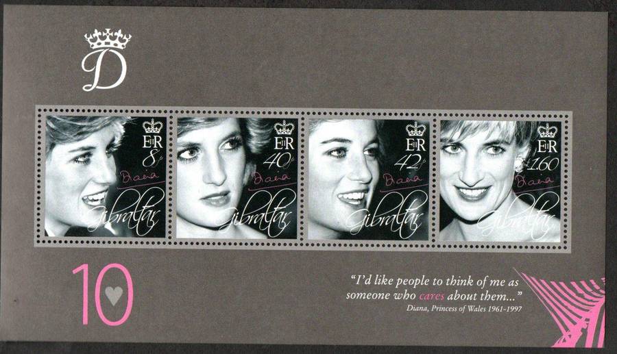 GIBRALTAR 2007 10TH DEATH ANNIV OF PRINCESS DIANA MSHEET UMM.  SGMS1205. CV GBP 8. AS PER SCANS. GIBRALTAR 2007 10TH DEATH ANNIV OF PRINCESS DIANA MSHEET UMM.  SGMS1205. CV GBP 8. AS PER SCANS. GIBRALTAR 2007 10TH DEATH ANNIV OF PRINCESS DIANA MSHEET UMM.  SGMS1205. CV GBP 8. AS PER SCANS.