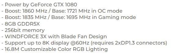 ** GIGABYTE GTX 1080 8G GAMING G1 GRAPHICS CARD **