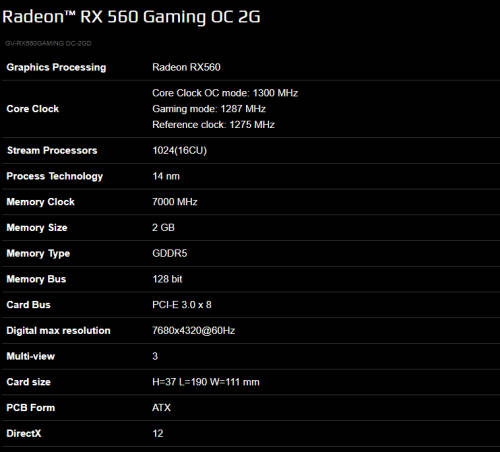 Gigabyte Radeon RX 560 Gaming OC 2G