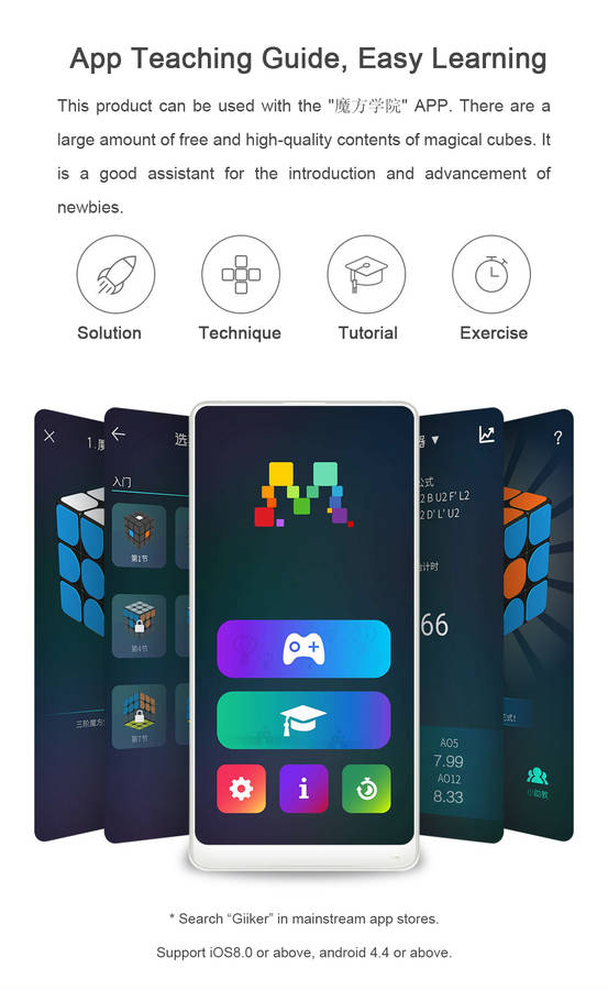 5. App Teaching Guide, Easy Learning Search aGiikera on mainstream app stores, there are a large amount of free and high-quality contents of magical cubes. It is a good assistant for introduction and advancement of newbies. *