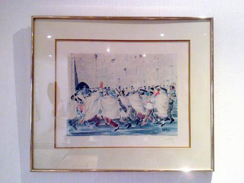 A rare opportunity to own a limited edition print from renowned Israeli painter Gila Holt. This print, depicting dancing men in Jerusalem is one of the artists signature pieces. This print is signed and numbered 59/200. It measures 67cm x 57cm. Make sure you get this one!
