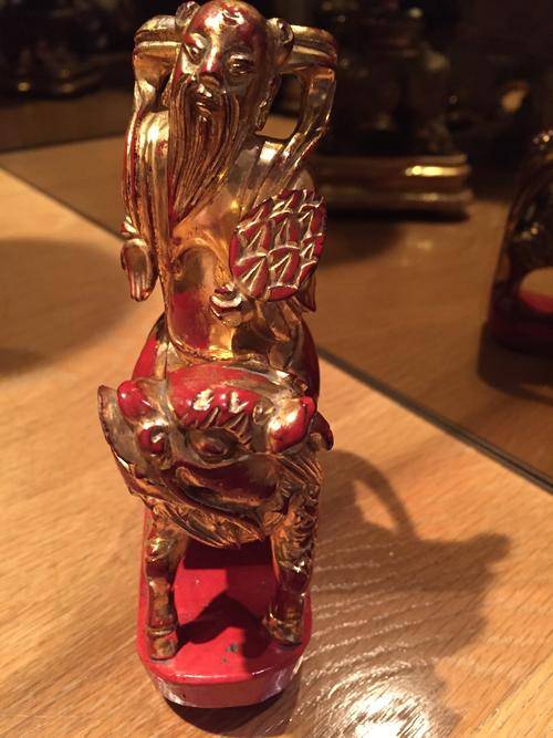 Gilt Chinese Temple Wood Carving of Mounted Warrior