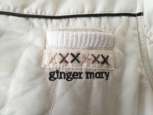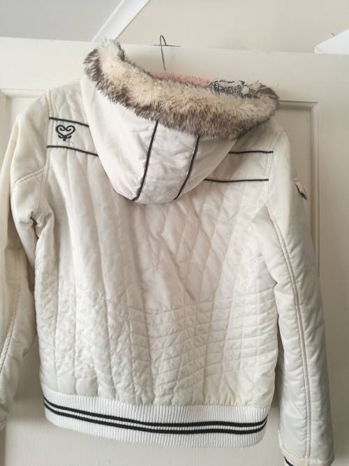 Lovely warm Ginger Mary jacket with a hood in a beige with chocolate brown trim.Word Gently.