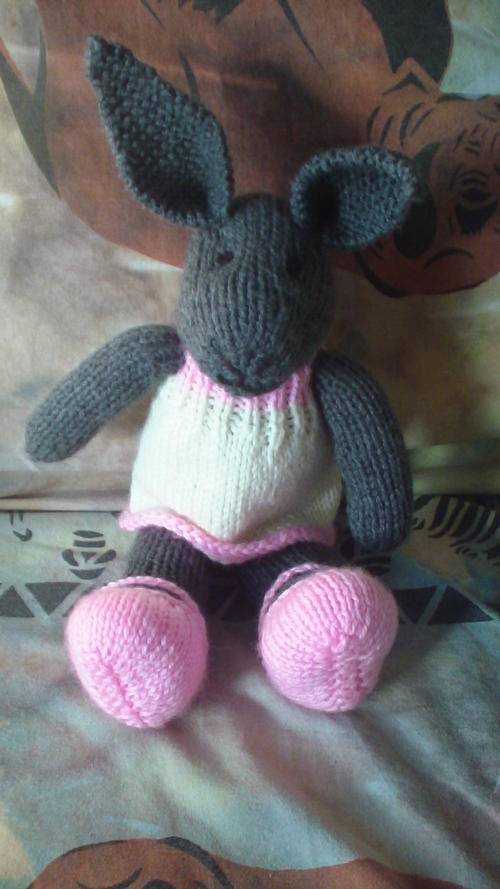 Gorgeous Hand Knitted Bunny in her dress and shoes - 30 cm
