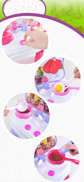 This Mini Kitchen Play Set is a fun and interactive way to teach them colours,objects,and shapes alike.