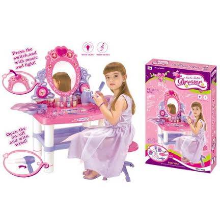 This accessory packed girls toy dressing table with stool would make the perfect gift for any little girl on a special occasion.