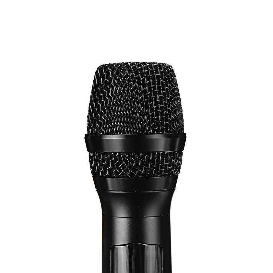 Features: UHF wireless ID pairing technology, support 10 channels, and support multiple sets using in a band simultaneously. Built-in lithium batteries of microphones and receiver are rechargeable via. DC-5V USB charging port. Can use your power bank for charging it, very portable and convenient. With microphone receiver, the wireless transmission distance of audio signal is about 50 meters. The receiver adopts 6.35mm audio plug into speakers and low-battery indicator. (The orange LED flashed when it`s low battery.) Application fields: Personal entertainment, home KTV, parties, education, advertising, conference and other purposes. Specifications: Model: K380S Color: Gray Frequency Band: UHF Working Channels: 10 SNR: >70dB Frequency Response: 50Hz~18kHz Distortion: a0.5% Latency: <3ms Working Distance: About 50 feet Battery Life: Microphone is about 8 hours; Receiver is about 5 hours Power Supply Mode: Microphone: 18650 lithium battery; Receiving Box: Built-in lithium battery Microphone Weight (2pc): 513.6g / 18.1oz Receiver Weight: 51.3g / 1.8oz ackage Size: 27.7 * 18 * 7.4cm / 10.9 * 7.1 * 2.9inch Package Weight: 762g / 26.9oz Packing List: 2 * Microphone 1 * Receiver 1 * USB Charging Cable 2 * Anti-skid Ring 1 * User Manual