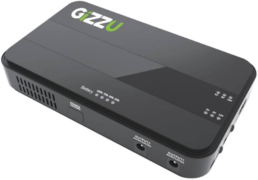 Gizzu GUDP36W Black 8800mAh Mini Dual DC UPS , Black- Input Voltage: 100~240Vac/50-60Hz, 4x High Capacity Lithium-Ion Batteries 2200mAh , Dual-Voltage DC Outputs, Intelligent Protective Design, Smart Chip Control, Retail Box , 1 year Limited Warranty