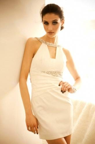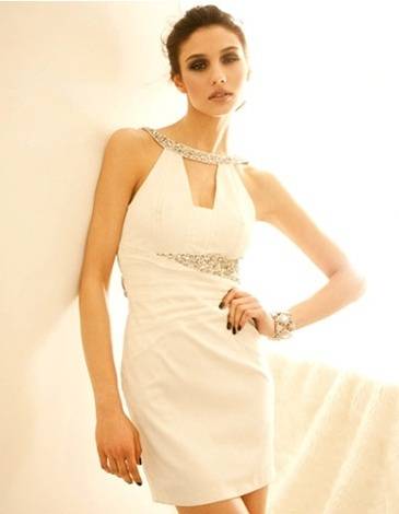 **GLAMOROUS WHITE COCKTAIL EVENING DRESS**