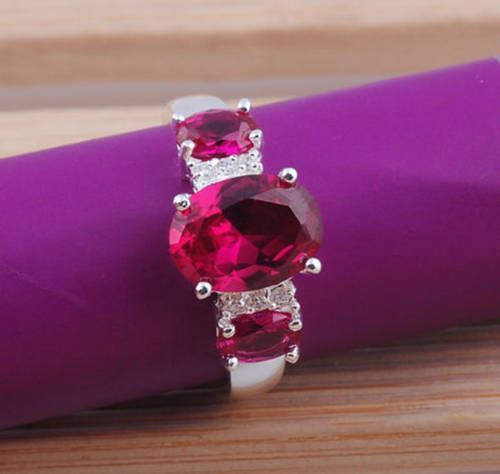 Glamorous -- Size 7 -- Tourmaline & White Diamond Imported Ring with 925 Marking (3.5gr.)