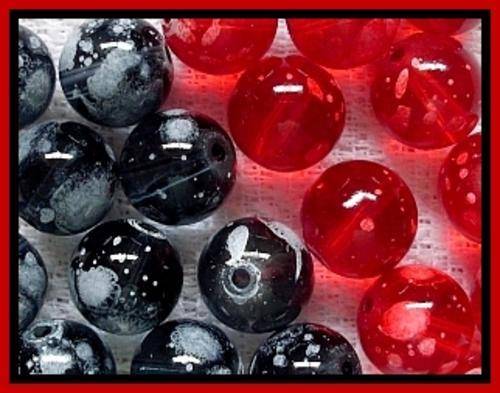 30 Opaque glass beads/silver swirls 8mm & 10mm