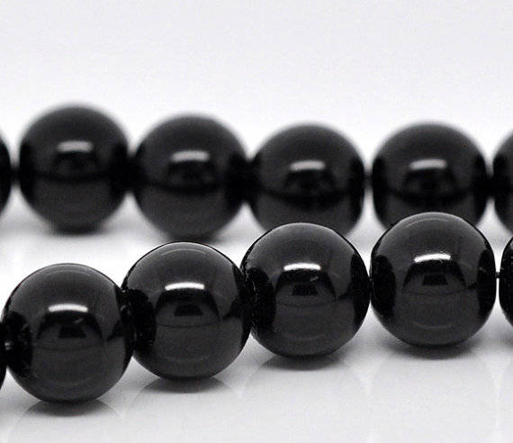 GLASS BEADS - LOOSE - BLACK - 14mm