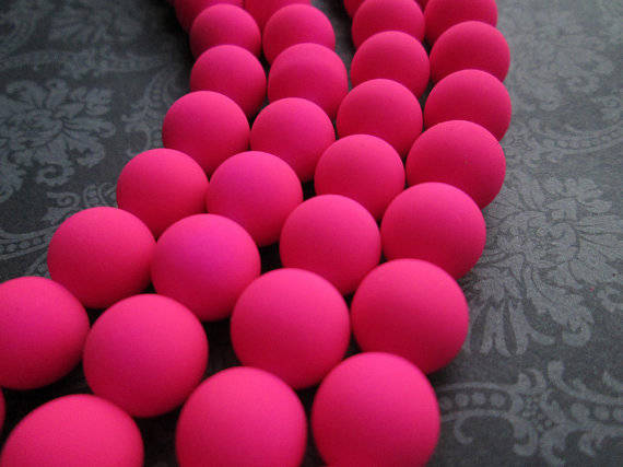 This listing is for rubberized glass beads in a bright neon pink color! They are a matte neon pink color and they will add a modern bright touch to all your jewelry and crafting needs! These are glass beads with a matte rubber coating. They look and feel very cool and unique!