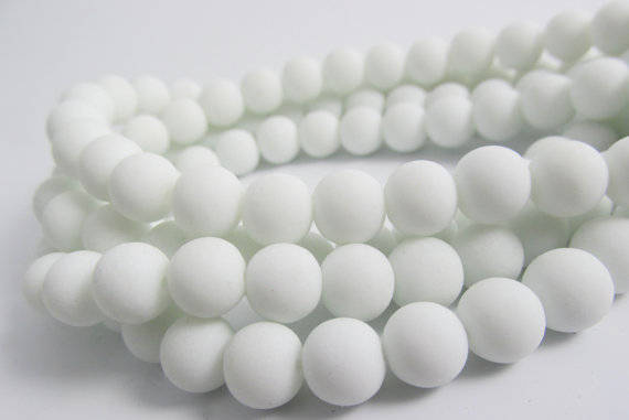 This listing is for rubberized glass beads. They are a matte white color and they will add a modern bright touch to all your jewelry and crafting needs! These are glass beads with a matte rubber coating. They look and feel very cool and unique!