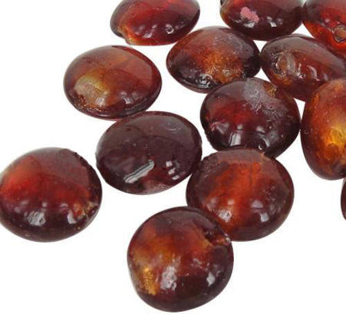 GLASS BEADS - SILVER FOIL - FLAT ROUND - DARK RUBY RED 12x8mm