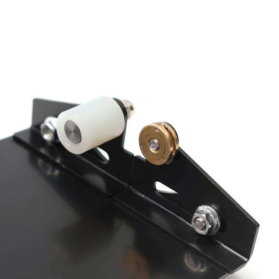 Decide where you want to cut the bottle by loosening the screw and moving the backstop forward for a shorter cut and backwards for a longer cut.