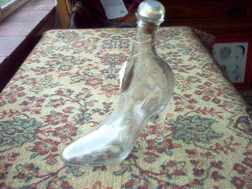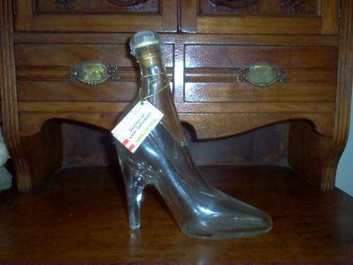 WHAT AN UNUSUAL BOTTLE AND A DELIGHT FOR COLLECTORS OF SUCH! IT IS IN THE SHAPE OF A LADIES SHOE AND HAILS FROM SALZBURG. IT COMES WITH A STOPPER AND A LABEL THAT SAYS PAPAGENA EINA OSTERREICHISCHE SPEZIALITZ IN GOOD CONDITION AND IT STANDS 23CM FROM STOPPER HEEL.THE STAMP ON THE SOLE READS DEPOSE 350ML.
