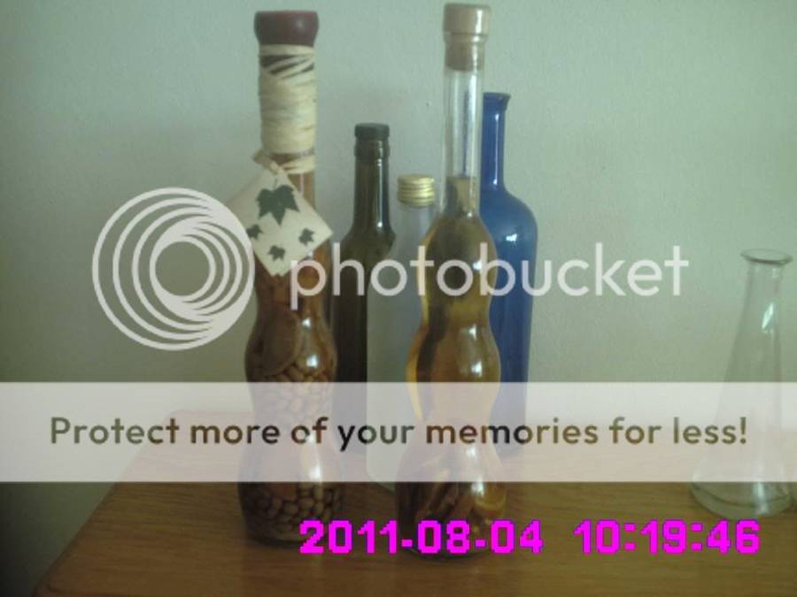 8 GLASS BOTTLES FOR THE KITCHEN. 5 HAVE LIDS - 4 CORK AND 1 SCREW ON.