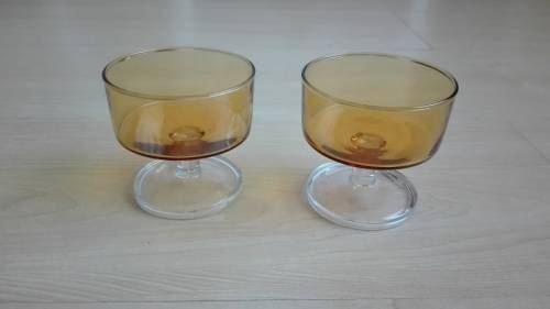 Glass bowls. There are 2 available at R15 each. size: height 8cm. width 9cm.