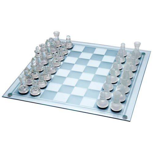 This wonderfully exquisite chess set comes with a 25cm glass board with alternating frosted and clear squares.