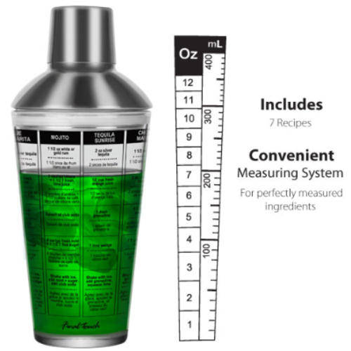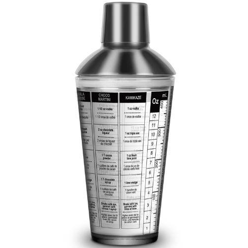 Yuppie Gadgets Glass Cocktail Shaker (473ml) is calibrated in both-ounce and milliliters.