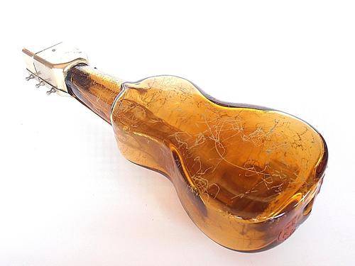 Glass guitar decanter, bottle. Good condition, there is a hole at the bottom, it must have been mounted on something at some stage. Coca Cola can is for size reference only and is not included in the auction.