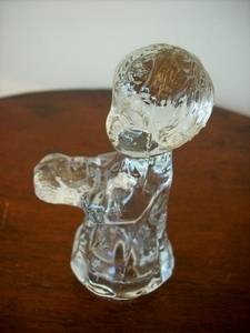 Glass ornament of a boy holding a bowl.  Good condition.  H:100mm.