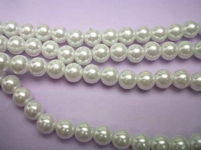 Glass Pearls, White, 8mm, ±50pc Glass Pearls, White, 8mm, ±50pc