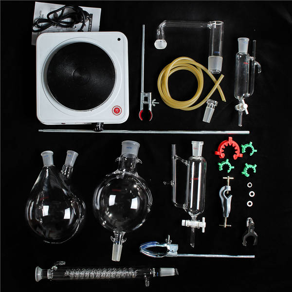 Glass Steam Distillation Lab Apparatus Essential Oil Extraction Kit 1500mW Stov Glass Steam Distillation Lab Apparatus Essential Oil Extraction Kit 1500mW Stov