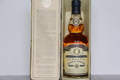 Glen Moray Single Highland Malt Scotch Whisky in Collectors Tin 750ml.Distlled and produced in Scotland by the Glen Moray-Glenlivet Distillery Elgin Scotland. This is a Collectors item and the 15 year is no longer produced by the Distillery.It comes with a limited edition collectors Tin. Item is vary rare and difficult to obtain.Although bottle is unopened and sealed and in excellent condition buyers must understand that the item is over 10years old and Tin has very slight imperfections.Bottle and contents however are perfect having been stored in the Tin.
