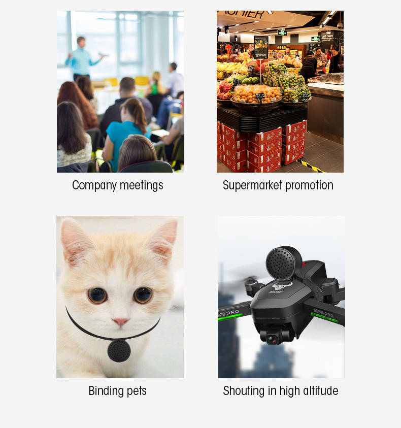 - Lightweight and portable. The megaphone is only 35g, and even a toy aircraft can carry a load.