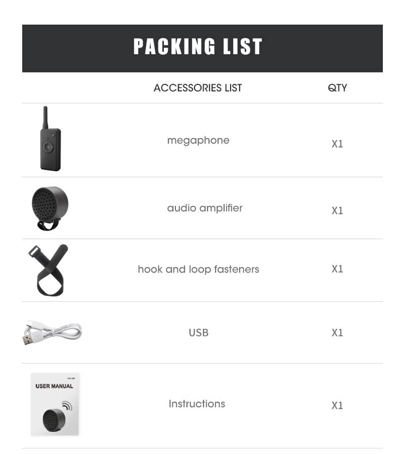 Megaphone Battery: 3.7V 220mAh LiPo (Bulit-in)