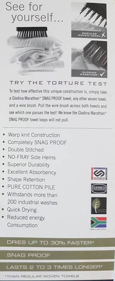 Glodina Marathon Snagproof bath Sheet white 85x150cm R120 ea 485gsm
