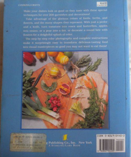 Glorious garnishes. Name and address of previous owner in front of the book but the rest is in good condition