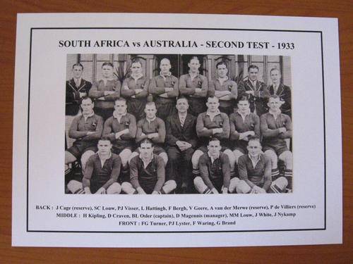 Gloss photo of the Springbok rugby team vs Australia second test - 1933 in Durban