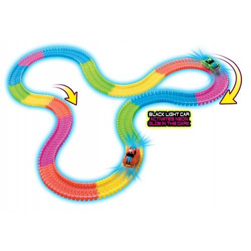 FastTrax are amazing new glow tracks that curve, bend and flex in every direction! Change up the action every time. Just snap the track pieces together and instantly get a different speedway - even as your car races around it! Turn off the lights and double the fun. The tracks glow bright in the night.