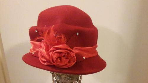 GO VINTAGE THIS CHRISTMAS with a RED HAT with roses, feathers and diamante!