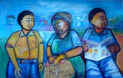 Godfrey was born in Johannesburg in 1947. His interest in art started at the early age of ten, when he began sketching his surroundings and anything that was appealing and different. He was one of the first to attend the art classes at the Jubilee Social Centre where he got his first professional instruction in art. He then went to the Ndaleni Art School in Natal, where he studied and became an art teacher. He taught art at various schools until such time as his own paintings became so in demand that he was compelled to become a full time artist.