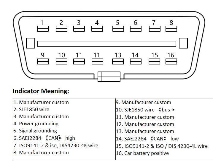 Extend the car's OBDII 16pin interface to tell you whether the OBDII interface connection is good or not, which is convenient for the test of OBDII interface voltage waveform.