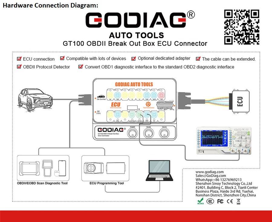 GODIAG GT100 is a latest testing platform for OBDII protocol communication detection and ECU maintenance / diagnosis / programming / coding.