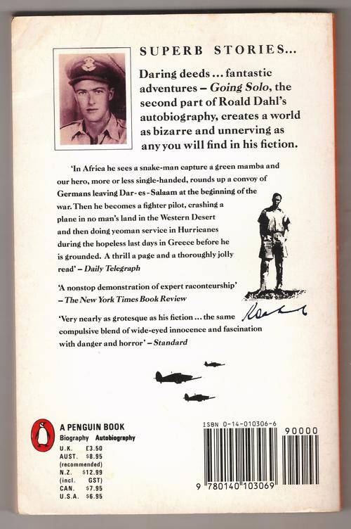 In Going Solo, the world's favourite storyteller, Roald Dahl, tells of life as a fighter pilot in Africa.'They did not think for one moment that they would find anything but a burnt-out fuselage and a charred skeleton, and they were astounded when they came upon my still-breathing body lying in the sand nearby.' In 1938 Roald Dahl was fresh out of school and bound for his first job in Africa, hoping to find adventure far from home. However, he got far more excitement than he bargained for when the outbreak of the Second World War led him to join the RAF. His account of his experiences in Africa, crashing a plane in the Western Desert, rescue and recovery from his horrific injuries in Alexandria, flying a Hurricane as Greece fell to the Germans, and many other daring deeds, recreates a world as bizarre and unnerving as any he wrote about in his fiction.