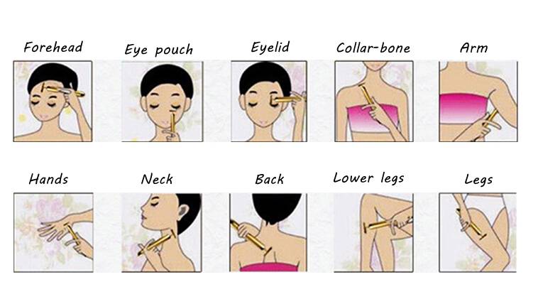 6. Can use in bathroom with waterproof structure. Use on forehead, cheek, neck, clavicle, shoulder, arm, hands & legs.