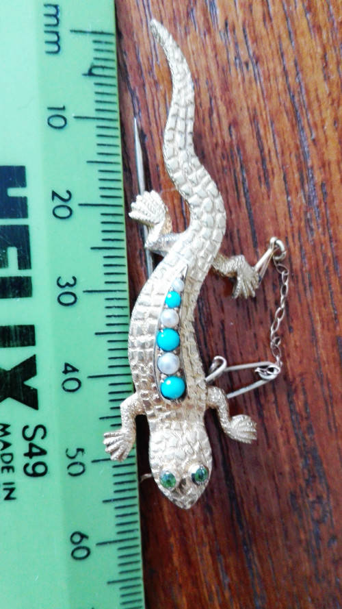 BEAUTIFUL 15 ct GOLD BROOCH IN THE FORM OF A GECKO.