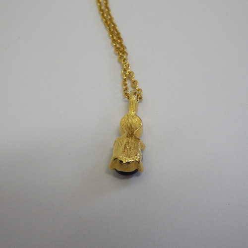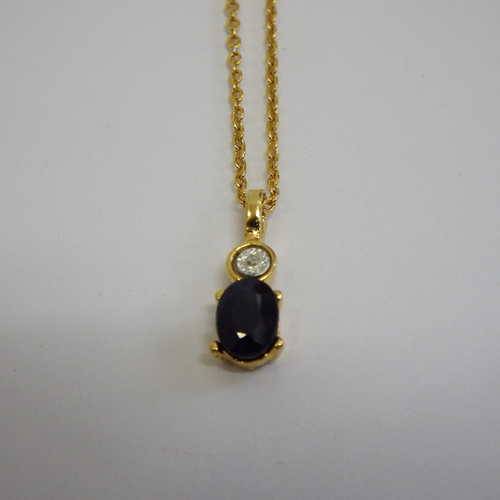 Gold coloured necklace with diamond and sapphire pendant