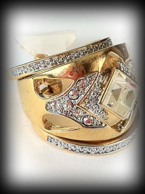 GOLD FILLED 3 BAND DIAMANTE RING SET 1 YEAR GUARANTEE SIZE 8