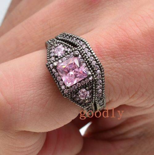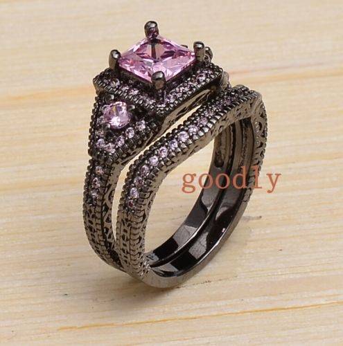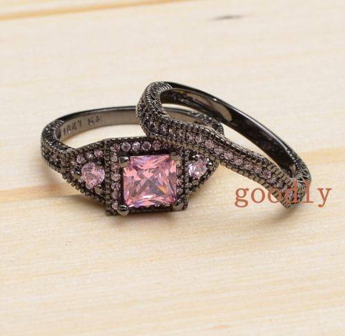 Gold Filled Princess Cut Pink Sapphire(synthetic) Bridal Wedding Ring Set