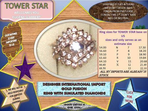 GOLD FUSION DESIGNER RING WITH SIMULATED DIAMANTE ADDED IN A STUNNING SETTING SIZE 18 & 19