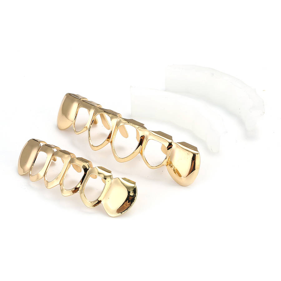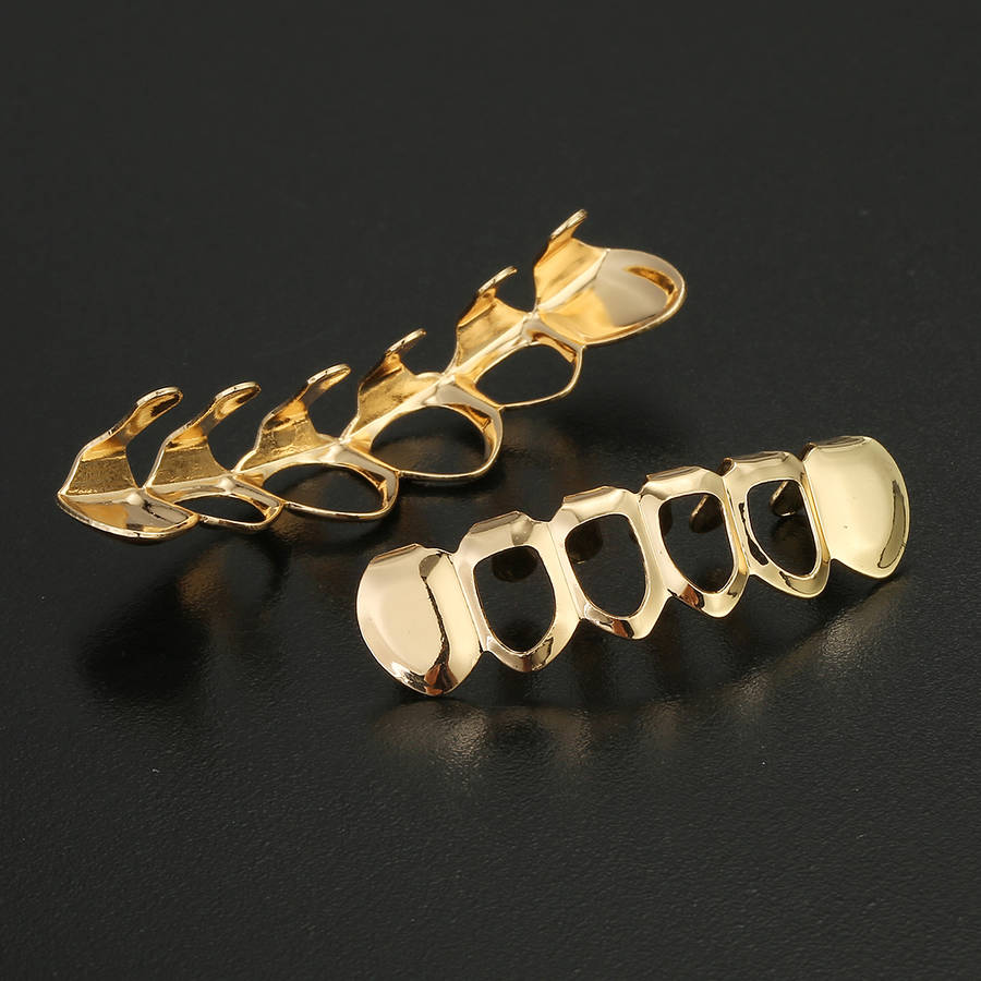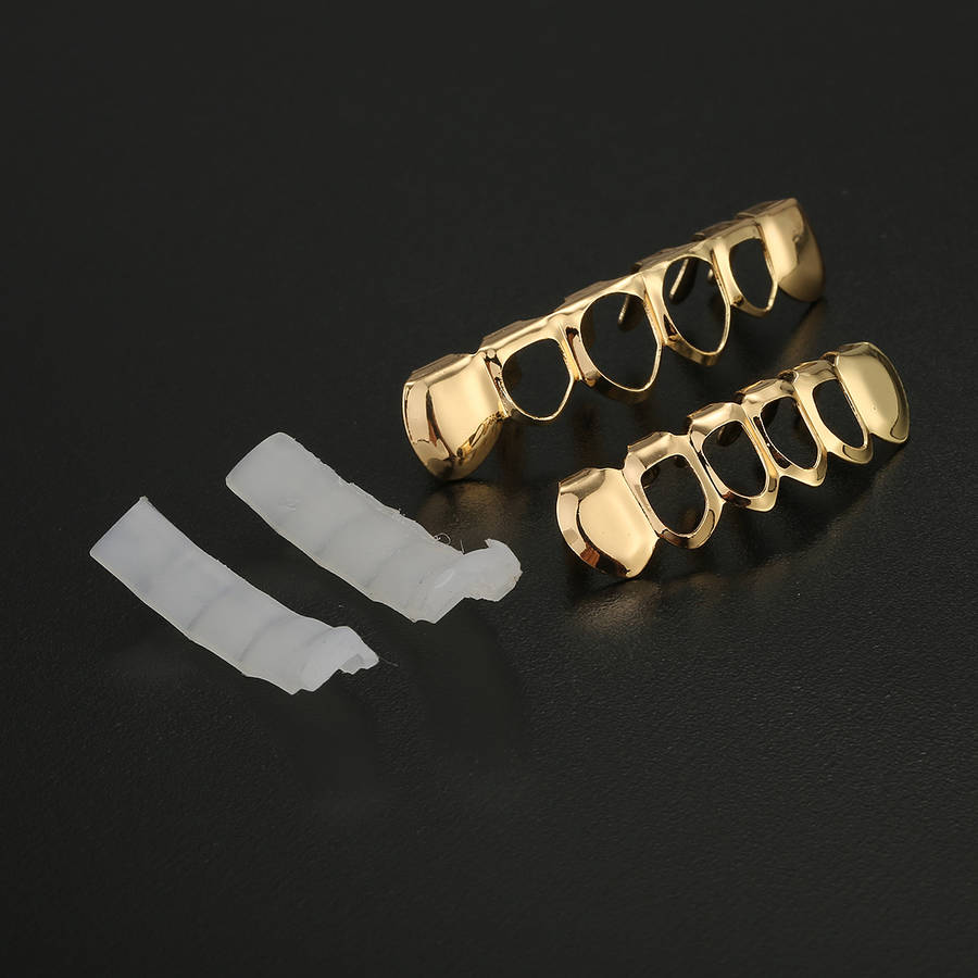 Gold Plated Open Face Fangs Teeth Top&Bottom Mouth Grillz Caps