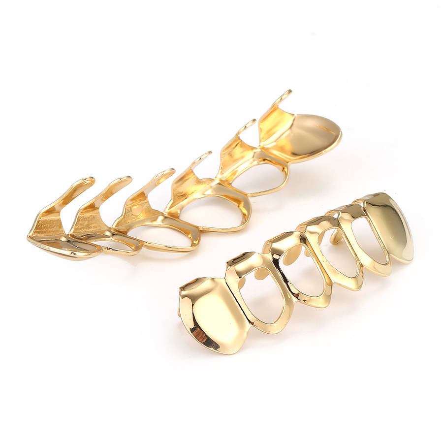 Style: Trendy/ Punk Type: Body Jewelry Material: Gold Plated Main Color: Gold Weight: About 8g Size: Upper teeth Size: About 5x1cm(1.97x0.39'') Lower teeth Size: About 4x1.3cm(1.57x0.39'')